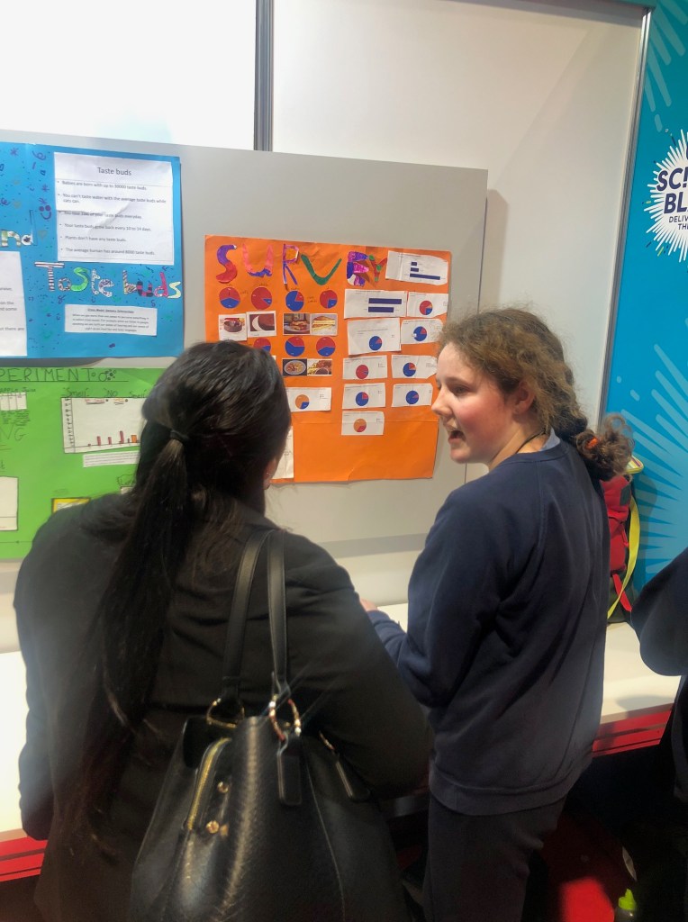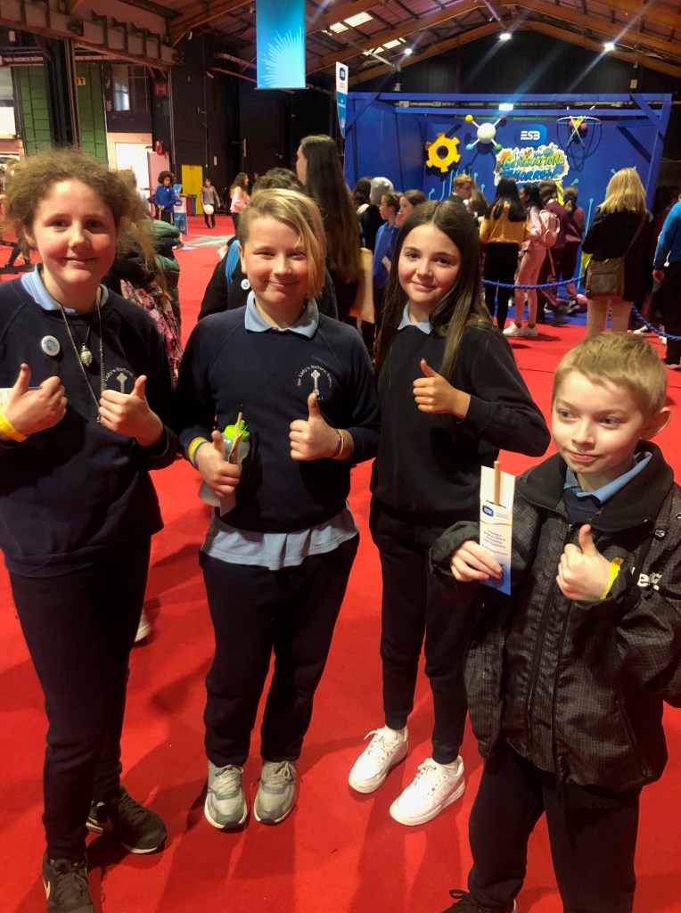 We are having great fun at Science Blast in the RDS. The children are enjoying visiting all the stands and learning about space, renewable energy and how physics can help you improve your soccer skills. They presented their project very well and got great feedback from their judge.