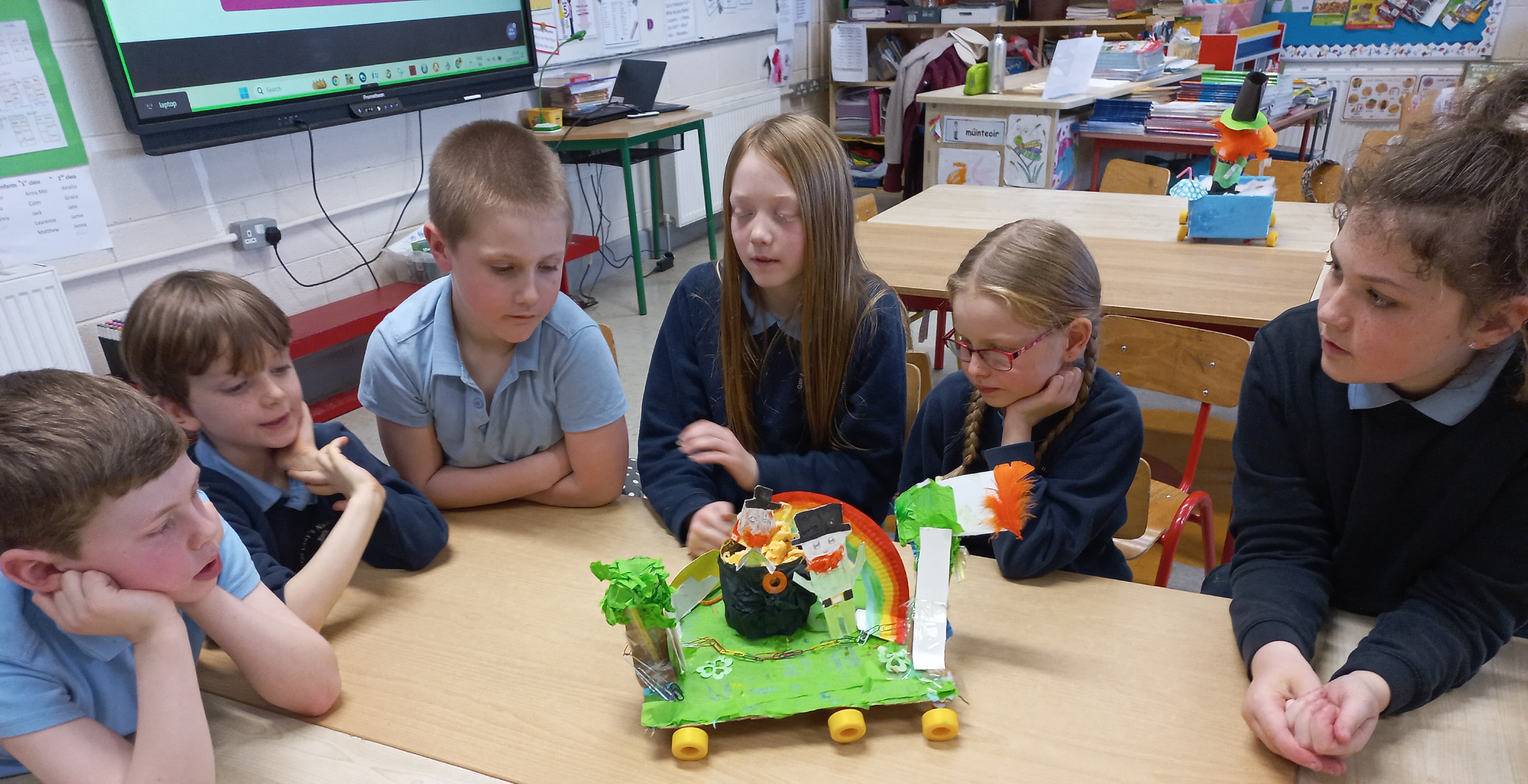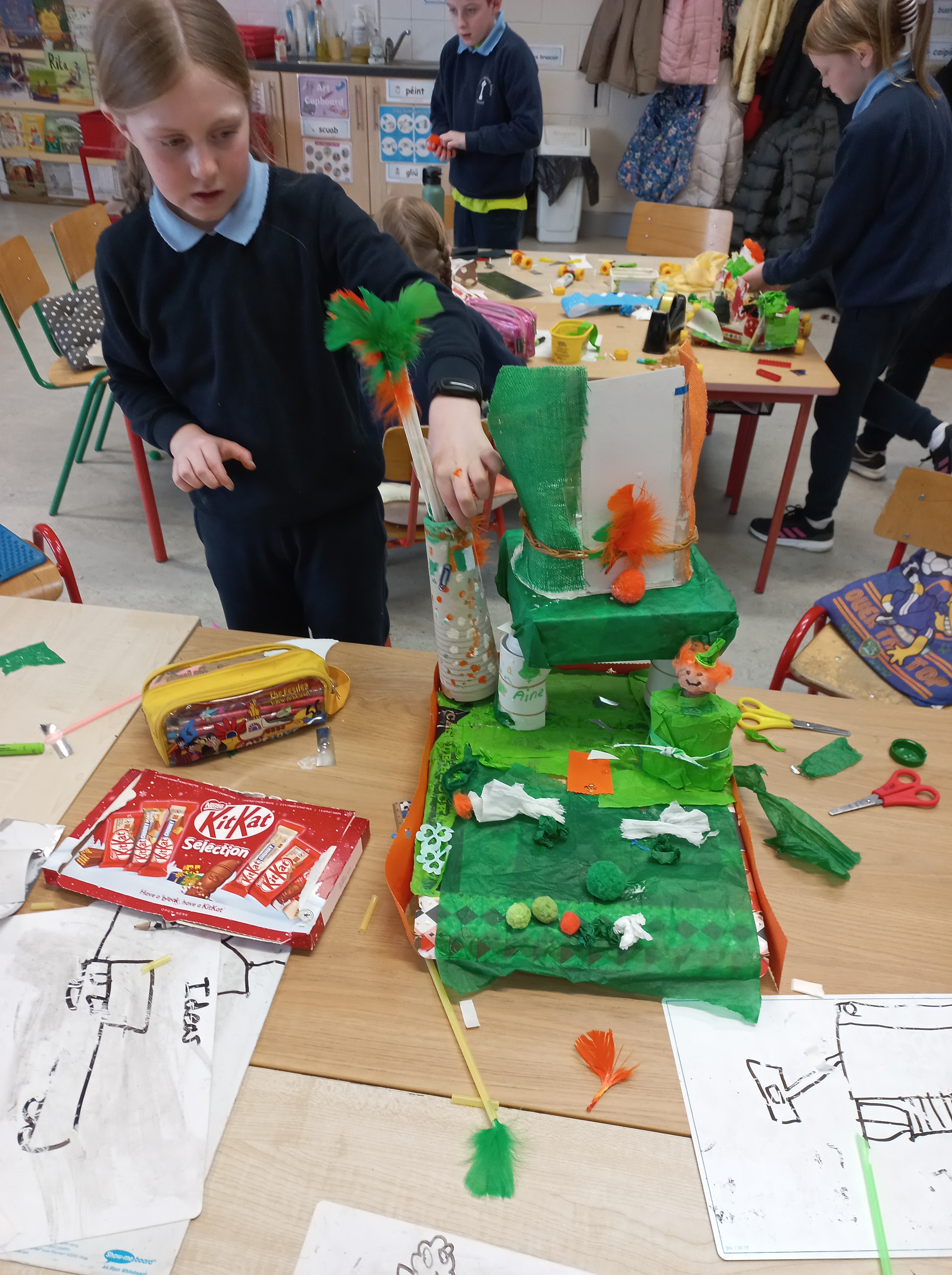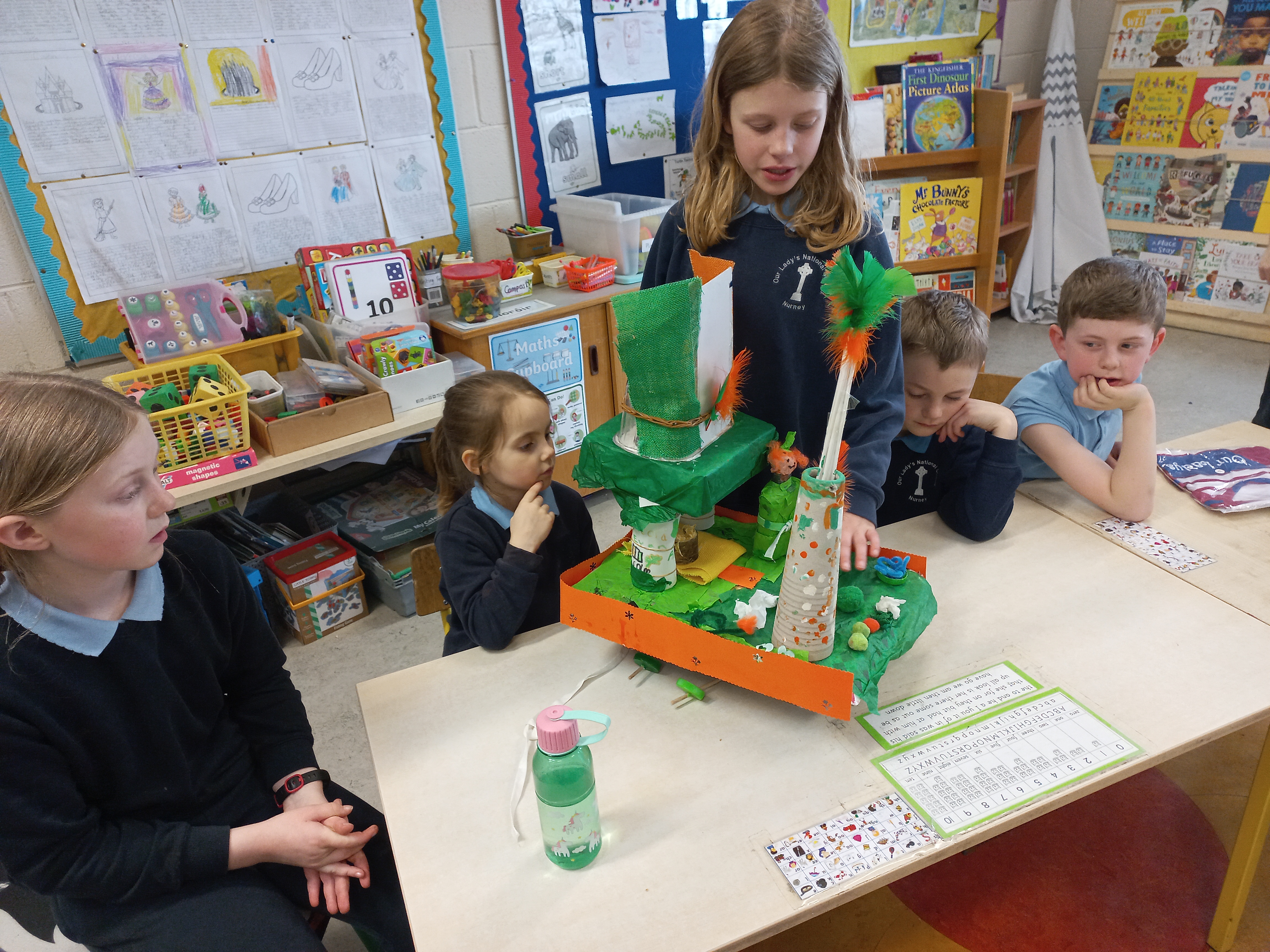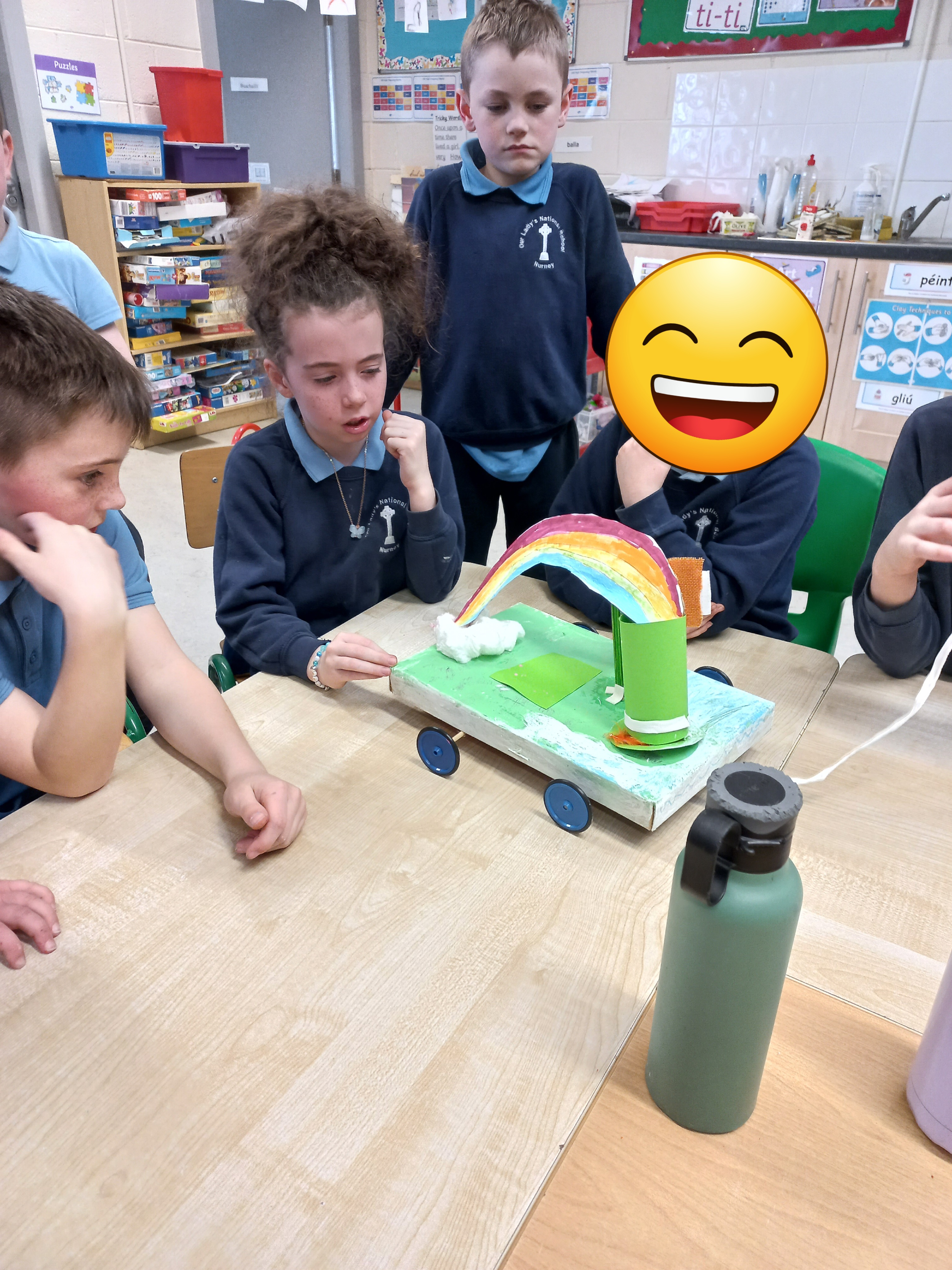 As part of our STEM work, the whole-school joined together for our annual Engineering Week event. The children worked in groups to create a working (moving), mini-float for St. Patrick’s Day. The brainstormed ideas, planned, designed, created, modified and collaborated on their project. They presented their work and spoke about problems they encountered and how they overcame those difficulties. The results were fantastic and we were delighted to see such great teamwork.