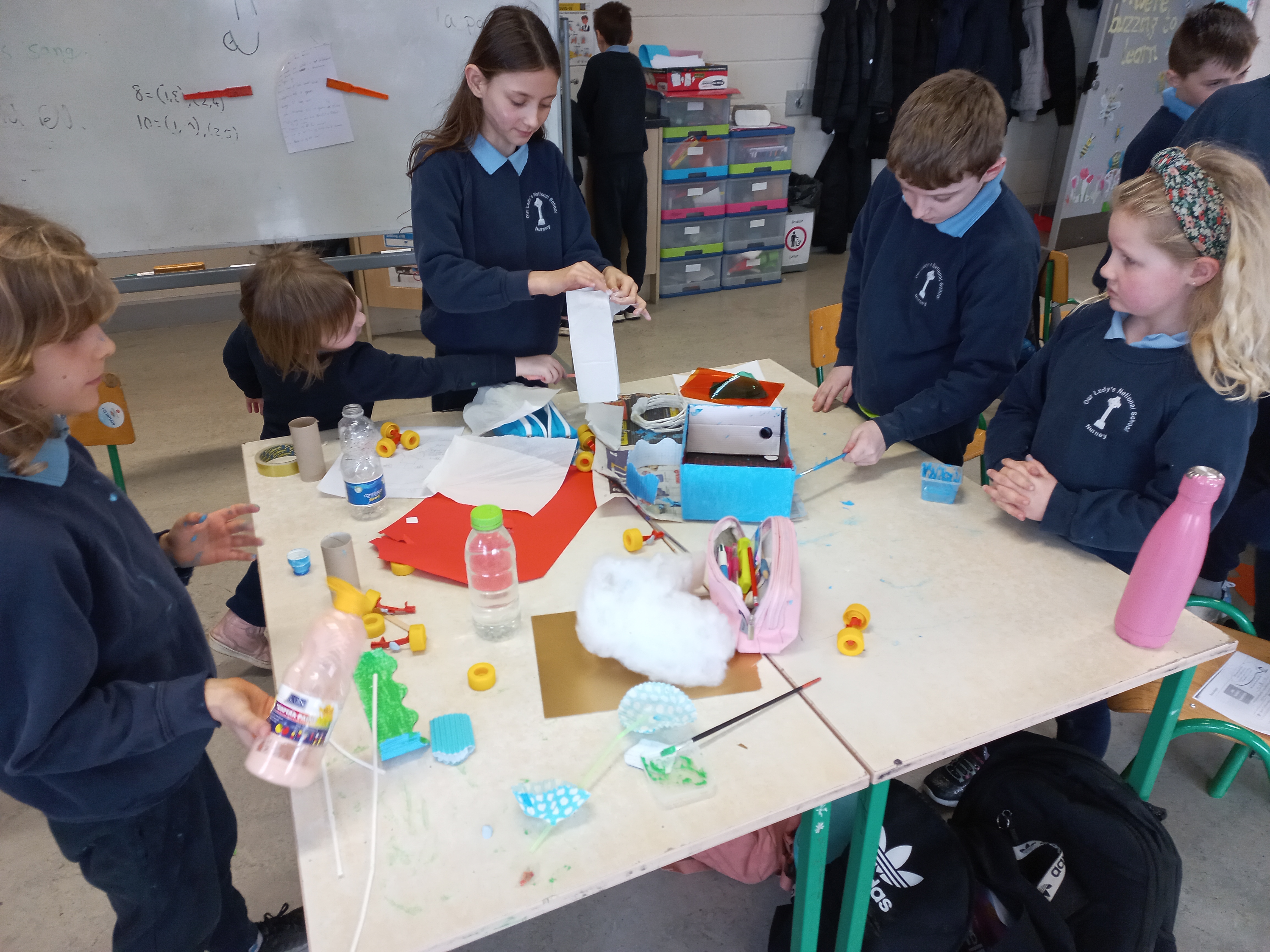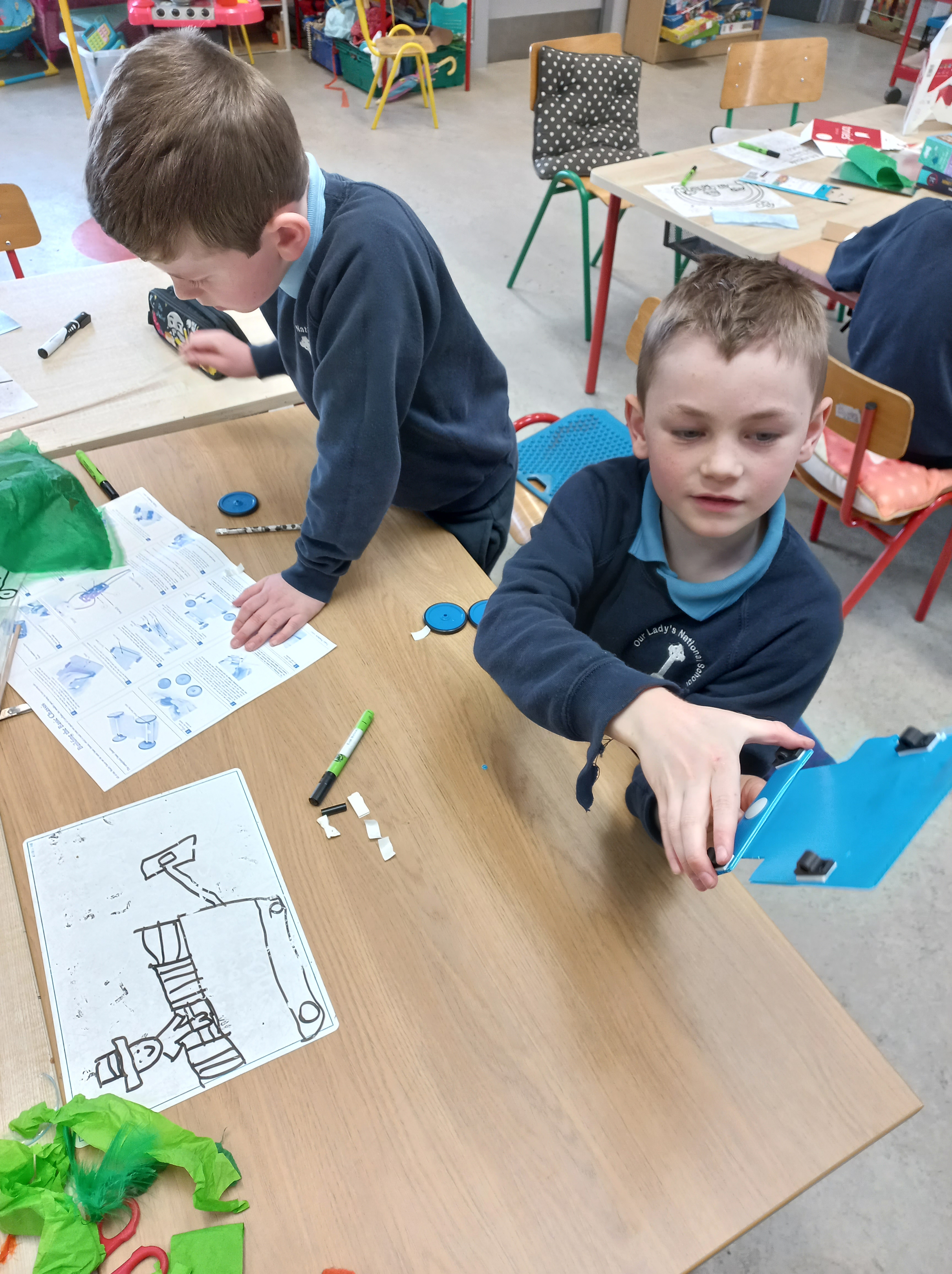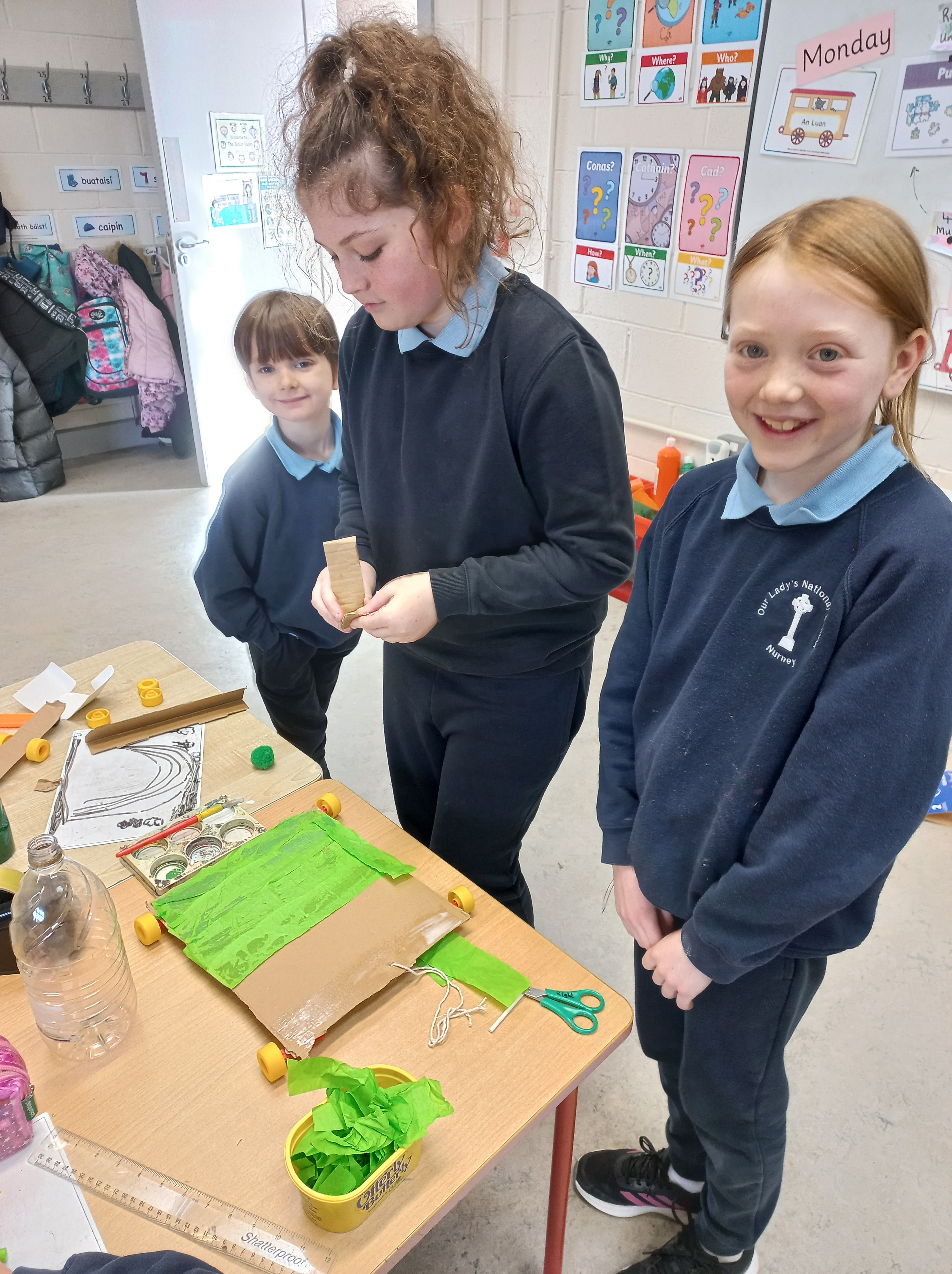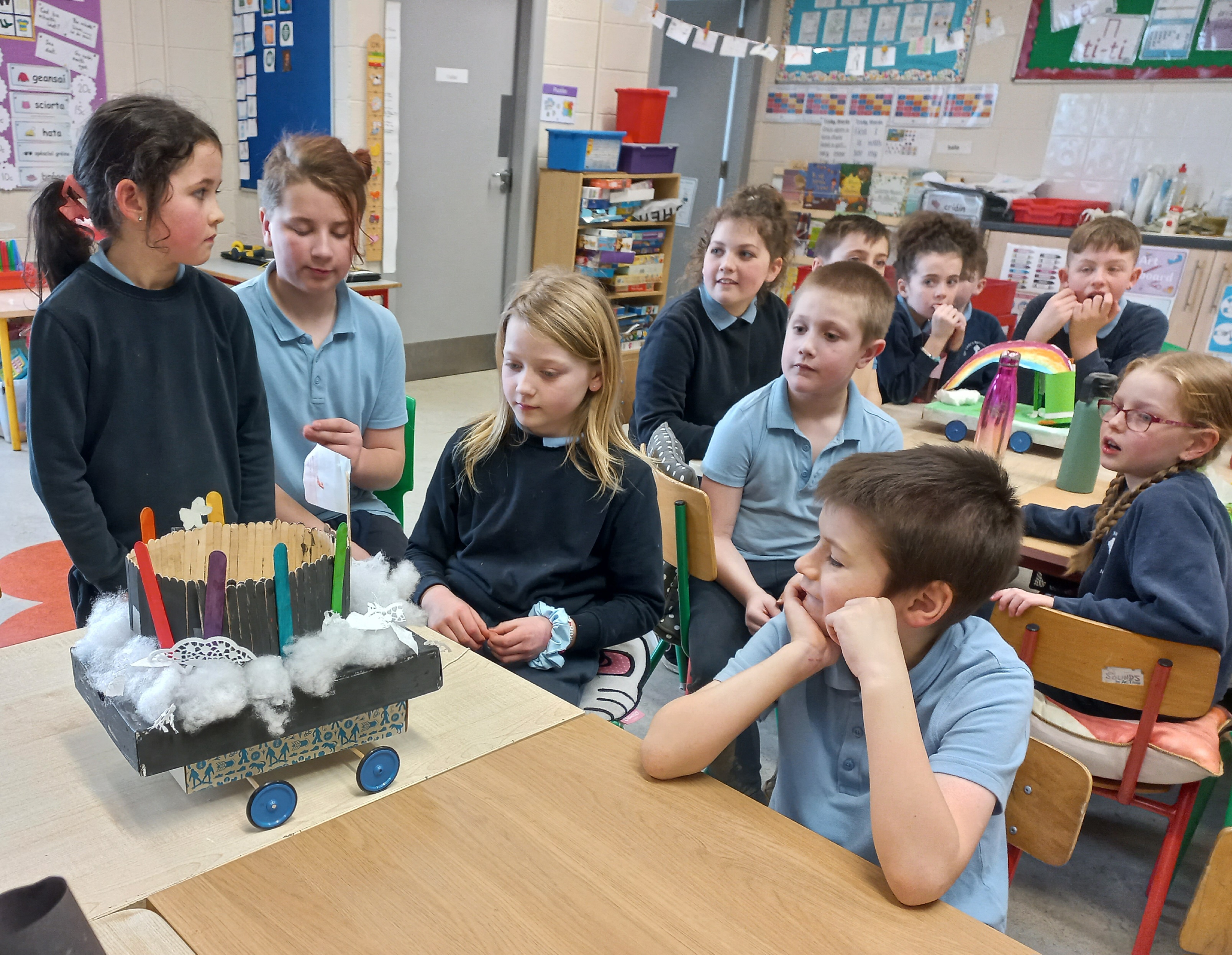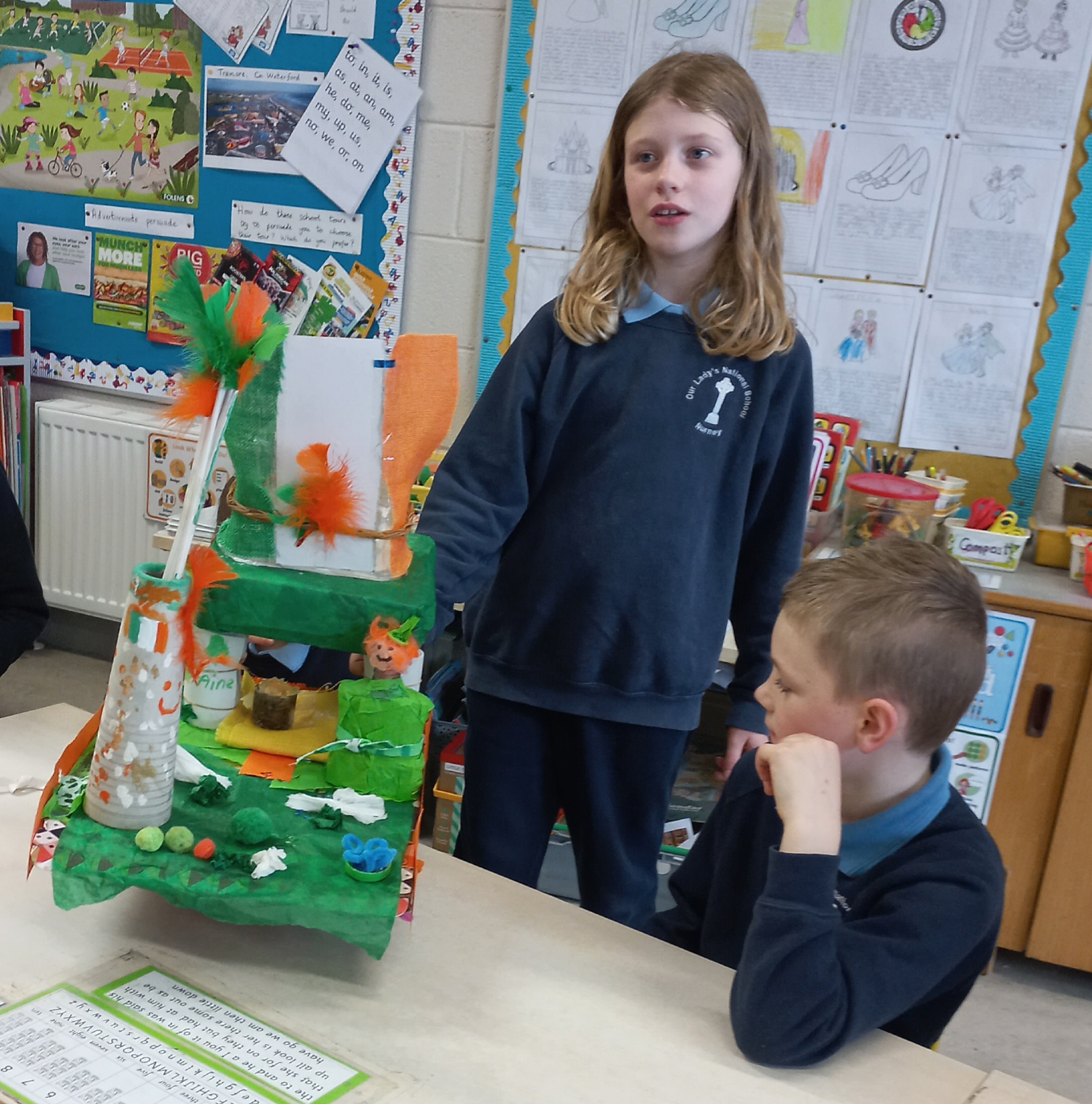 As part of our STEM work, the whole-school joined together for our annual Engineering Week event. The children worked in groups to create a working (moving), mini-float for St. Patrick’s Day. The brainstormed ideas, planned, designed, created, modified and collaborated on their project. They presented their work and spoke about problems they encountered and how they overcame those difficulties. The results were fantastic and we were delighted to see such great teamwork.