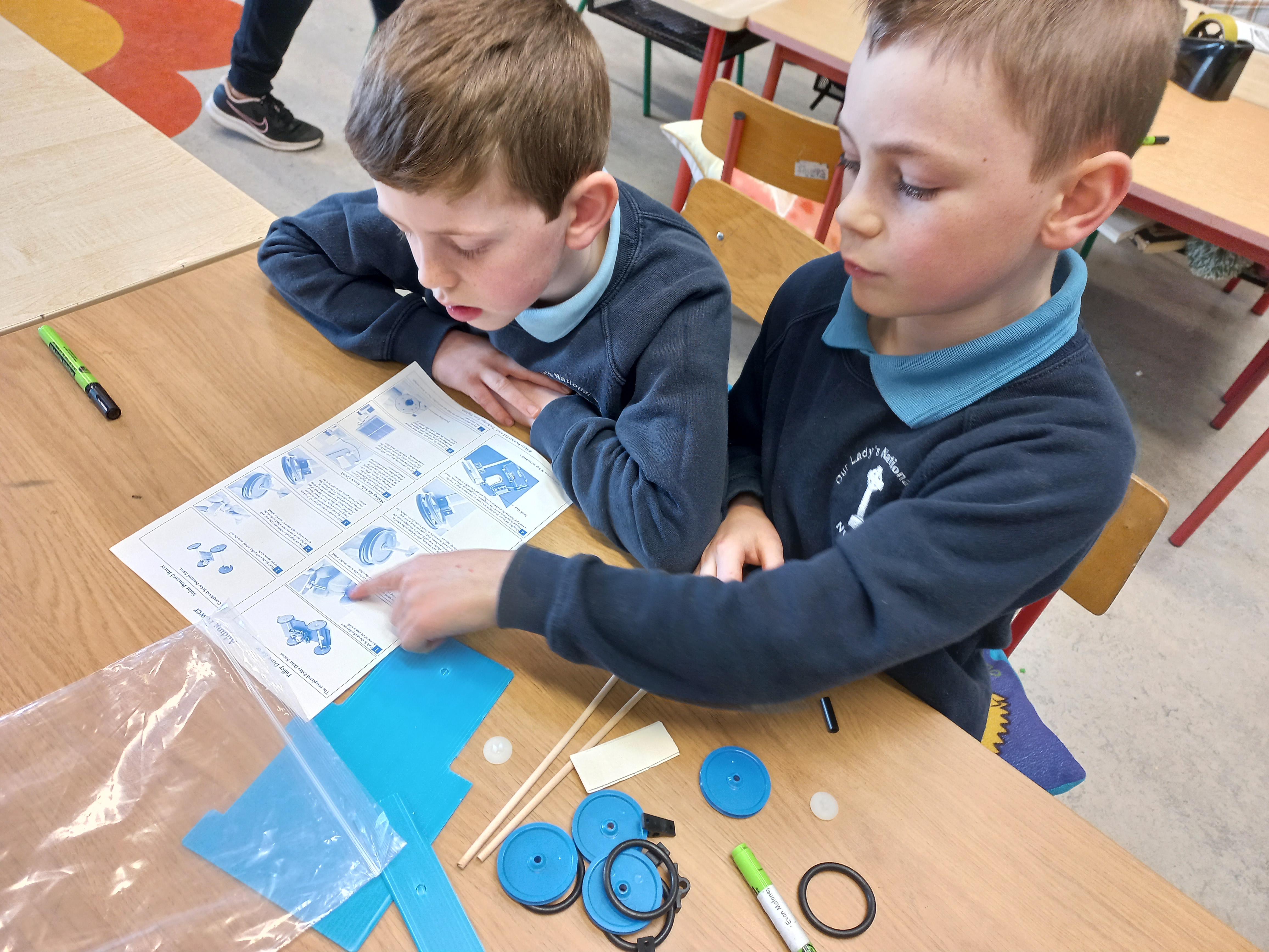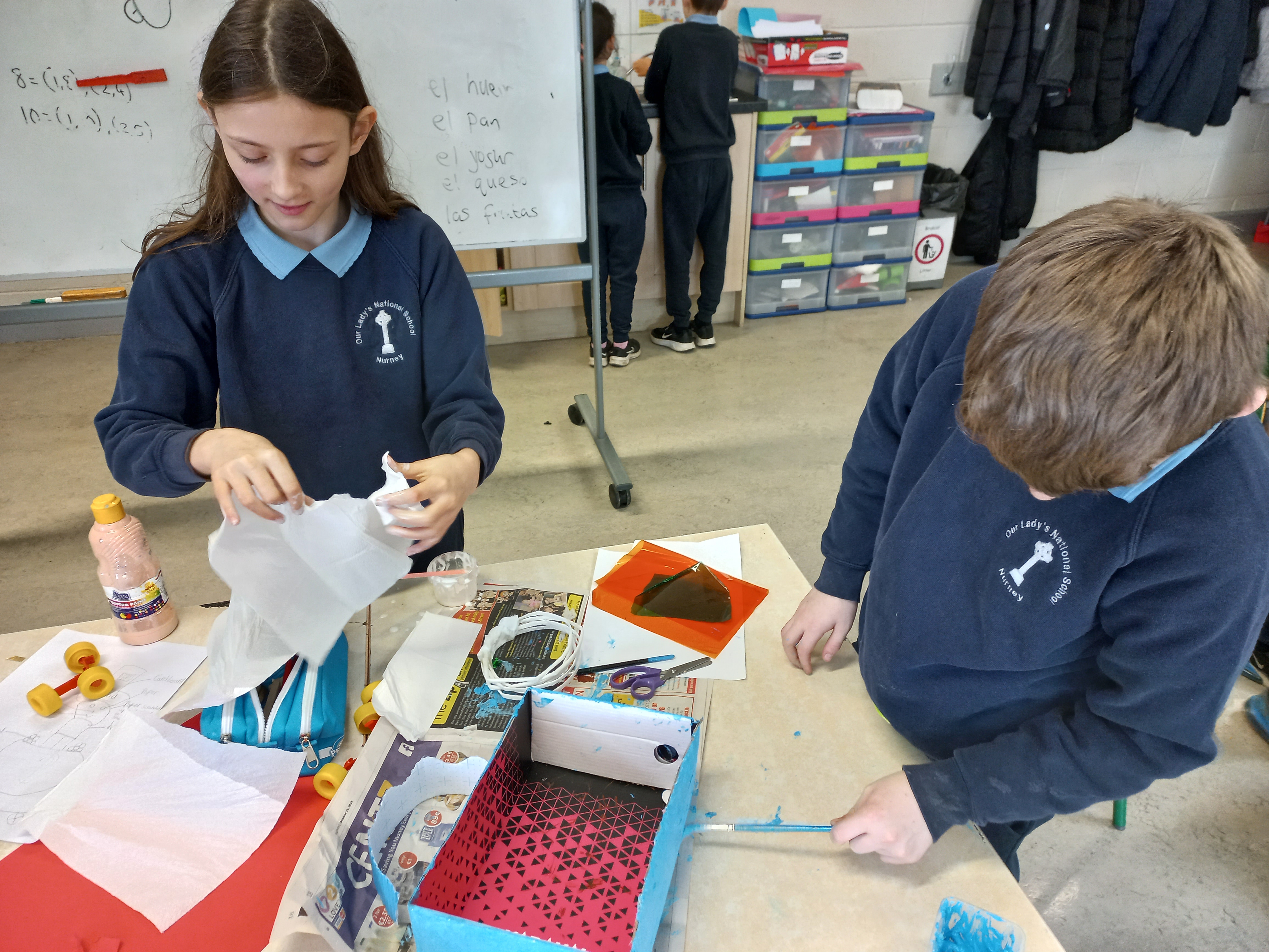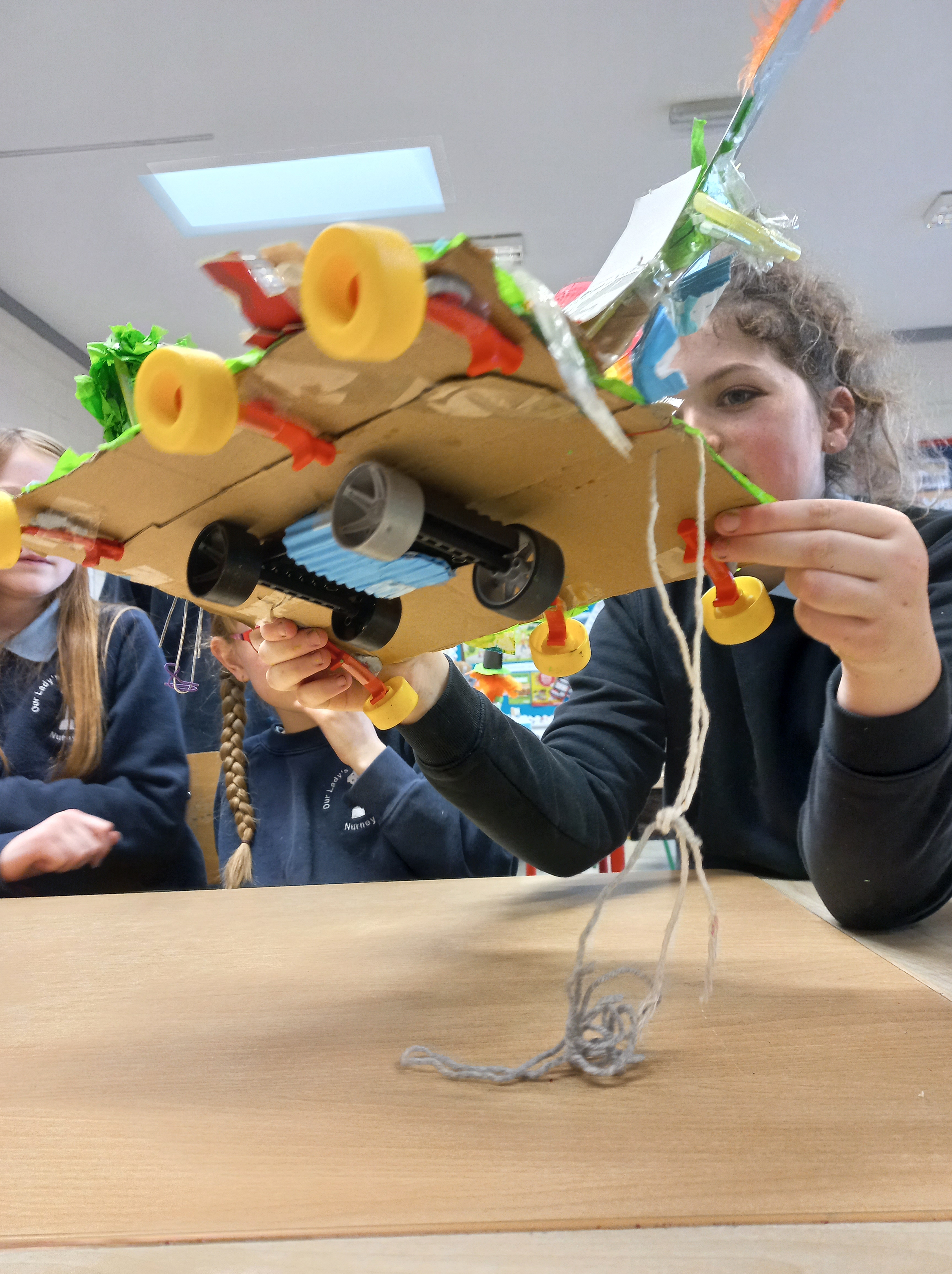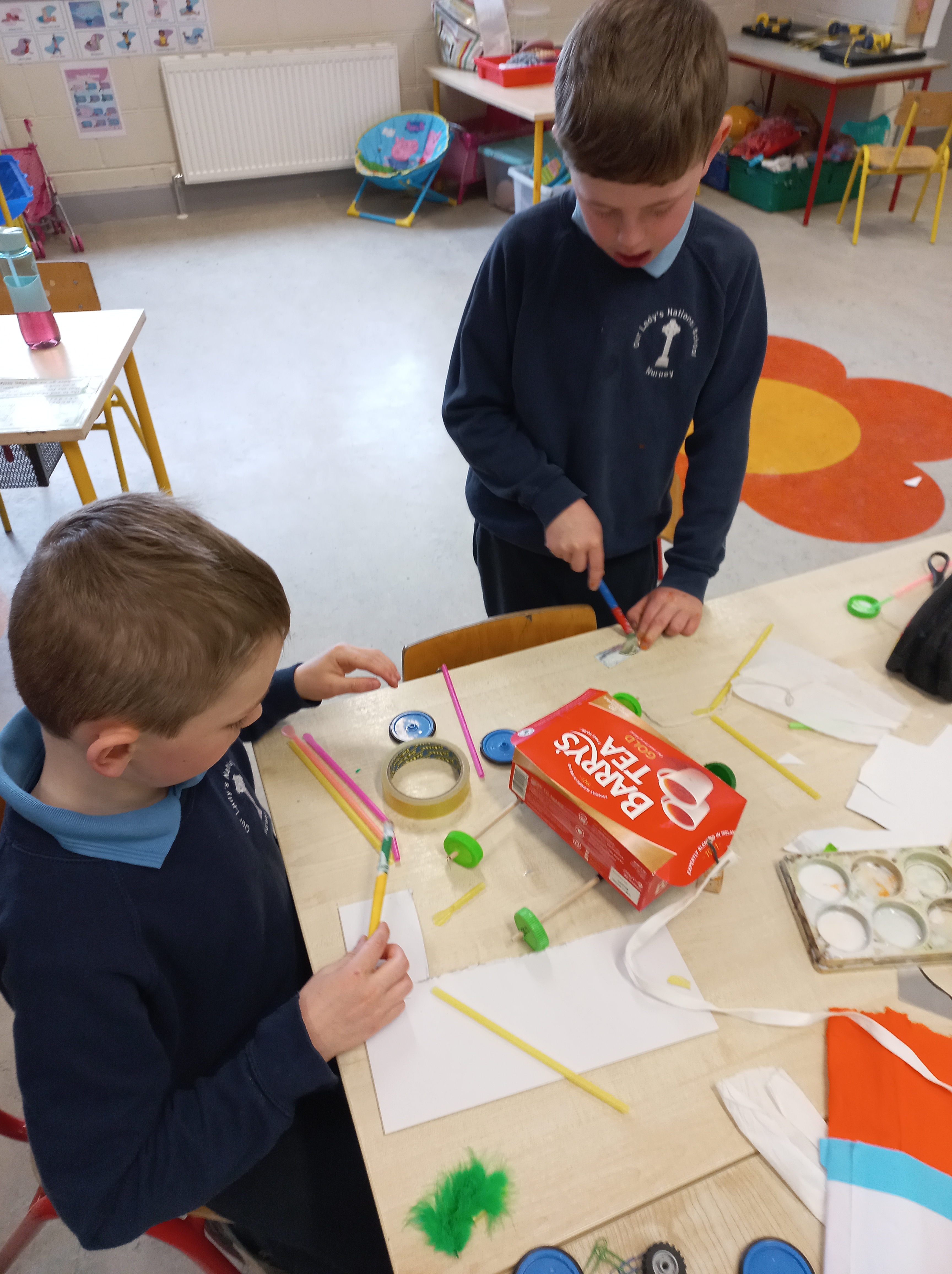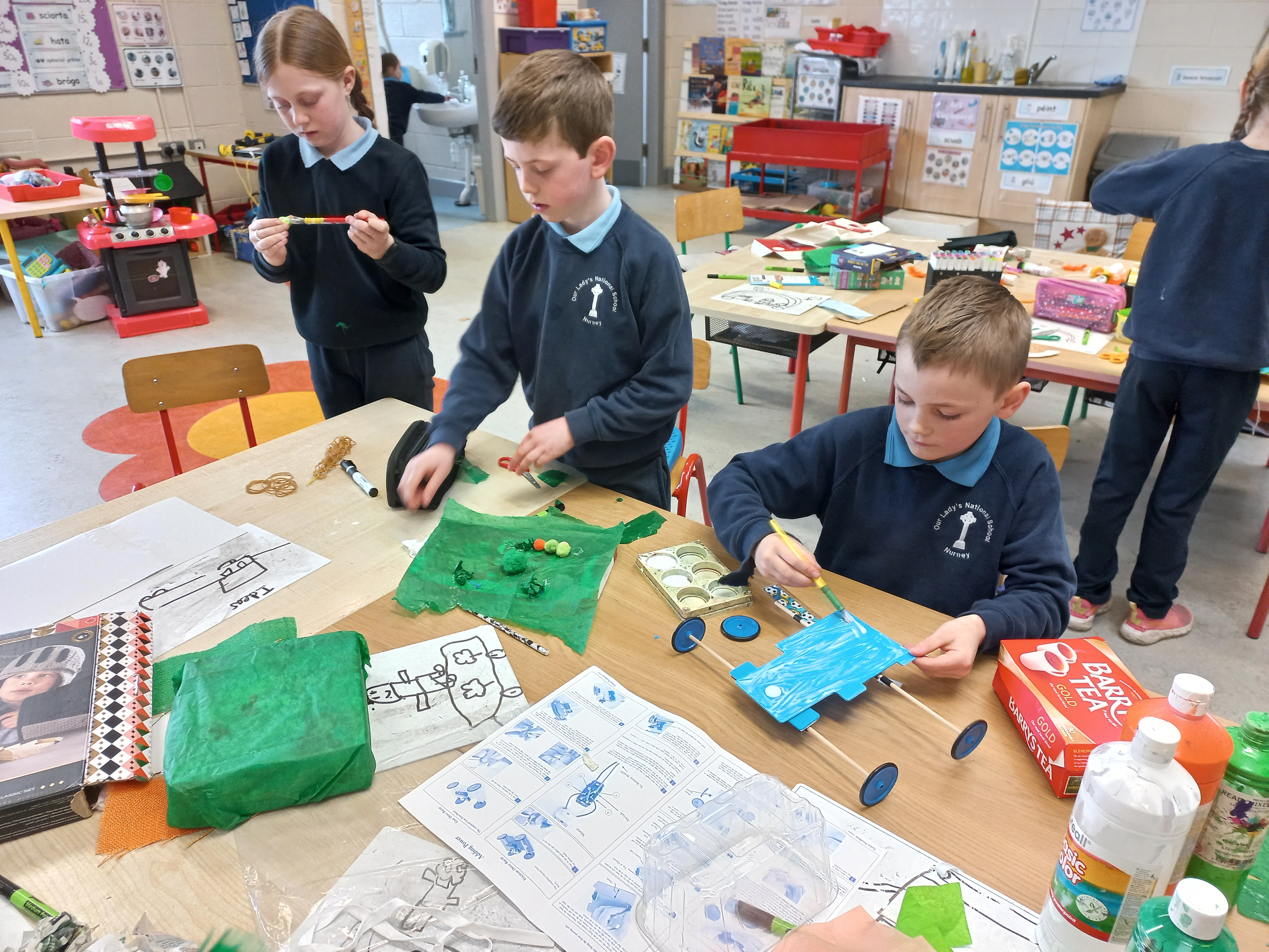 As part of our STEM work, the whole-school joined together for our annual Engineering Week event. The children worked in groups to create a working (moving), mini-float for St. Patrick’s Day. The brainstormed ideas, planned, designed, created, modified and collaborated on their project. They presented their work and spoke about problems they encountered and how they overcame those difficulties. The results were fantastic and we were delighted to see such great teamwork.