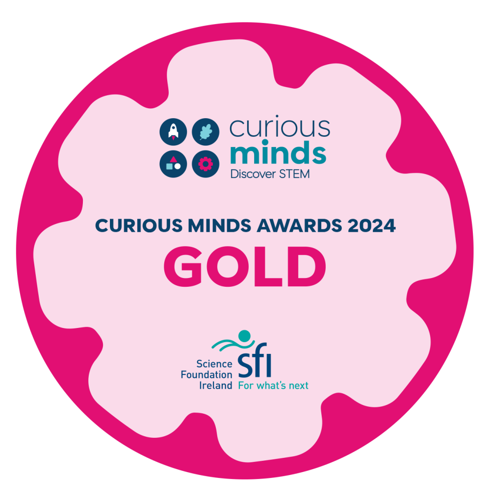 We were delighted to get word that we won the SFI Curious Minds Gold award. In previous years this was the Discover Primary Science and Maths award. The children have had a year jam-packed with STEM learning activities and we look forward to the online award ceremony and adding the plaque to our collection.