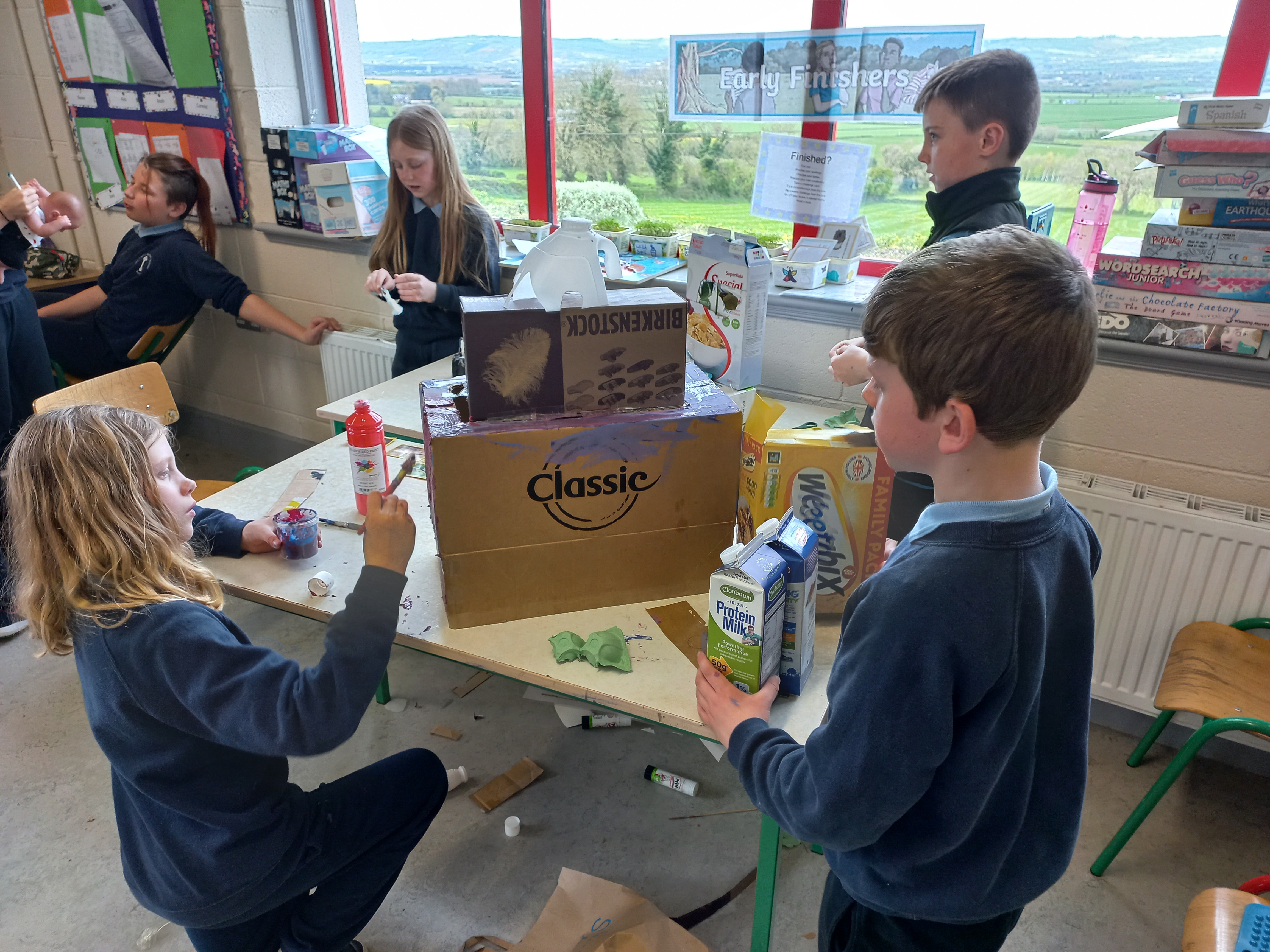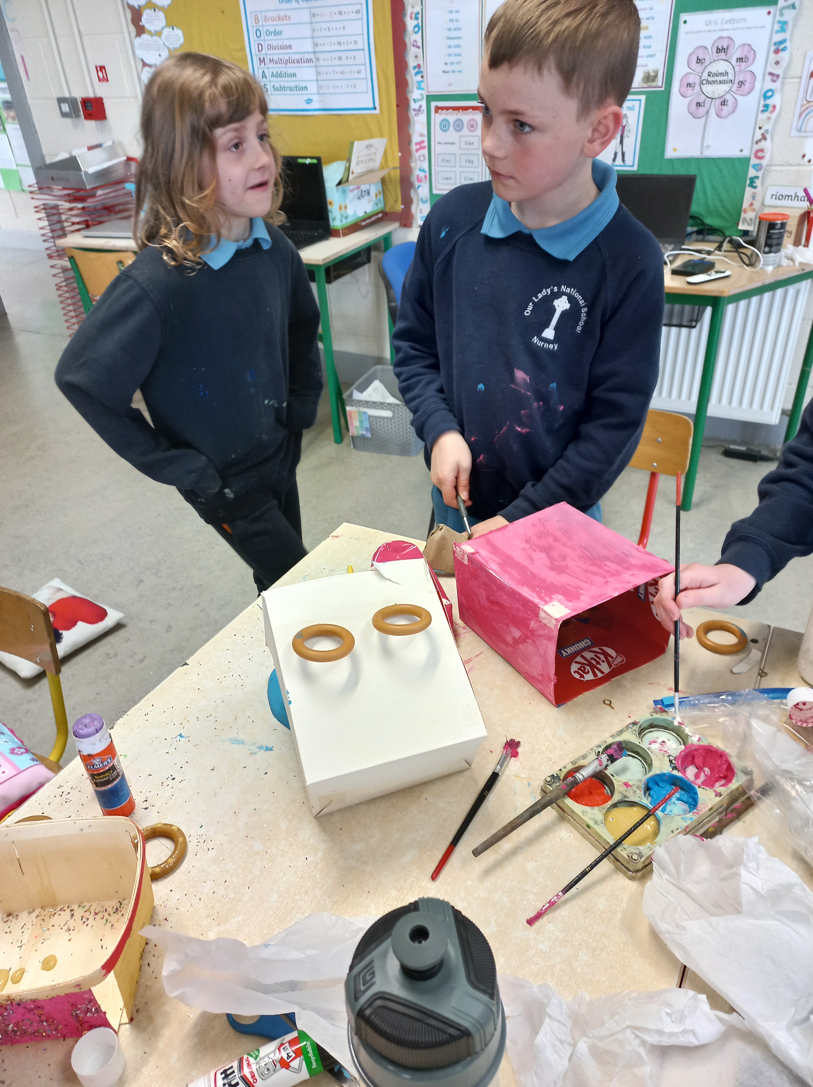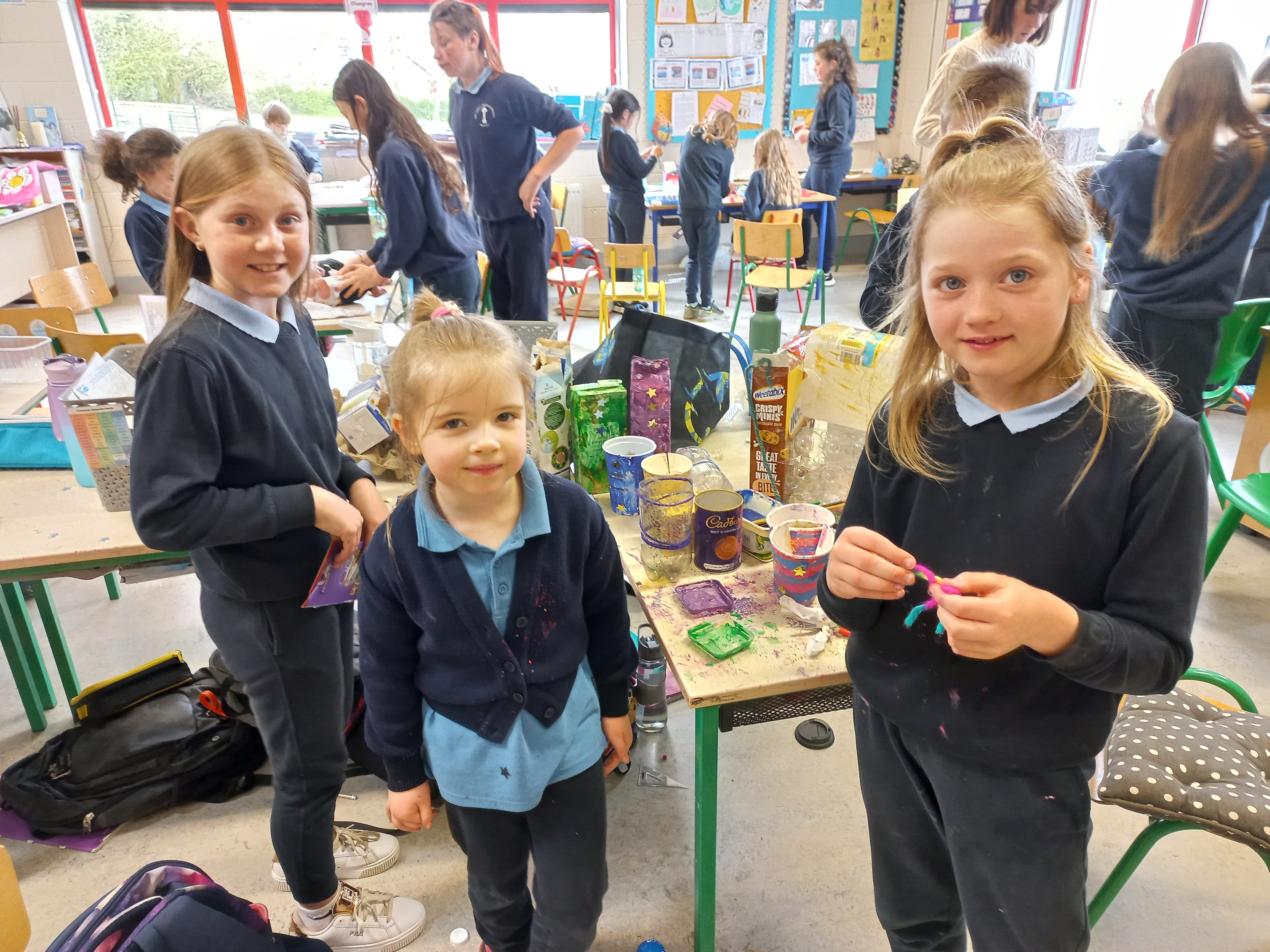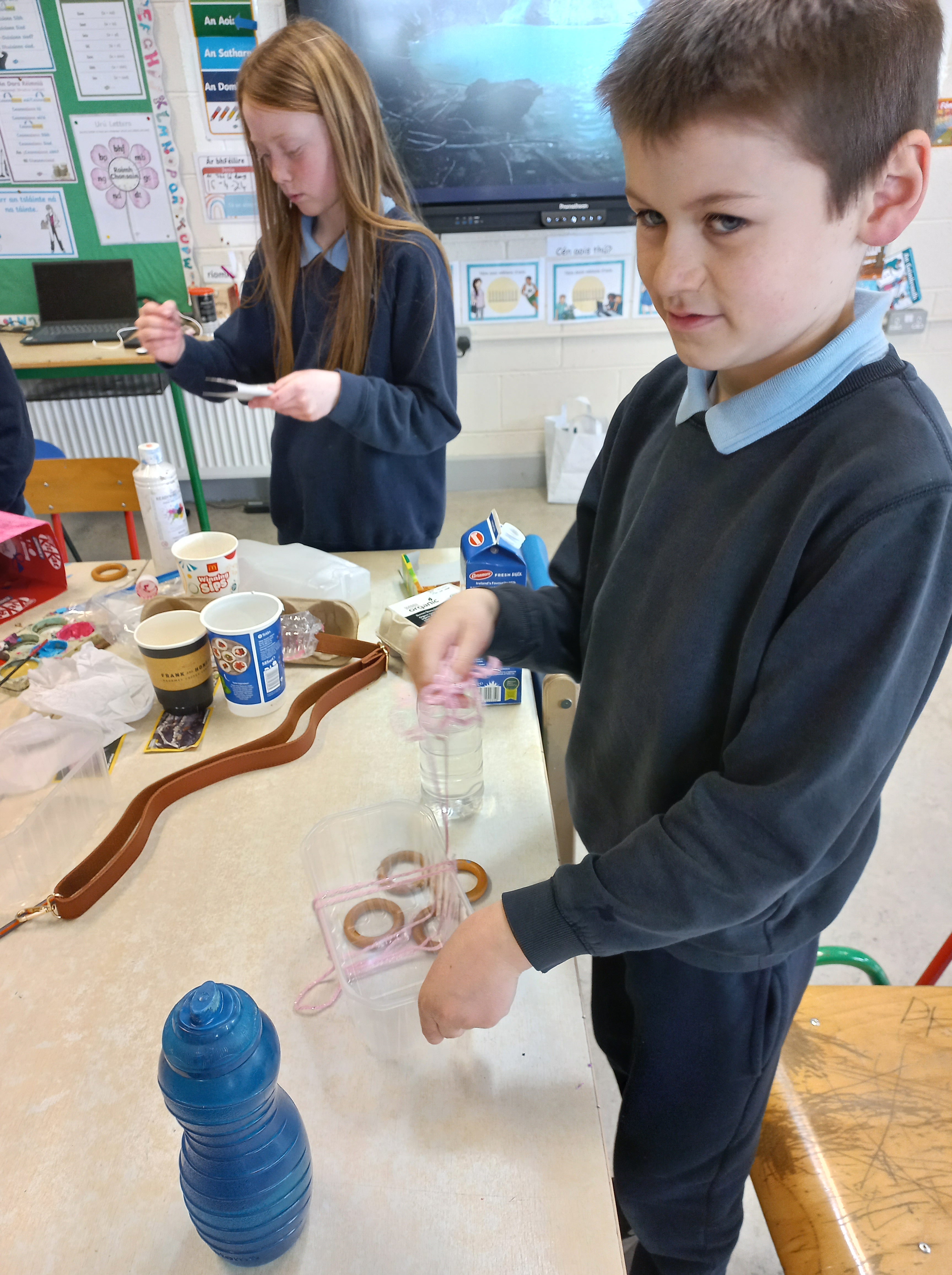 The Students Council came up with a great initiative to encourage recycling. They planned a recycling day for everyone and the children worked in groups to upcycle old unwanted items and recyclables. It was a challenge to think of new purposes for old things, but they pulled together and came up with some fantastic ideas. Bord na Móna were running an upcycling competition at the time, so we sent in some entries to them. Thank you to the Students Council for a day of fun and creativity!
