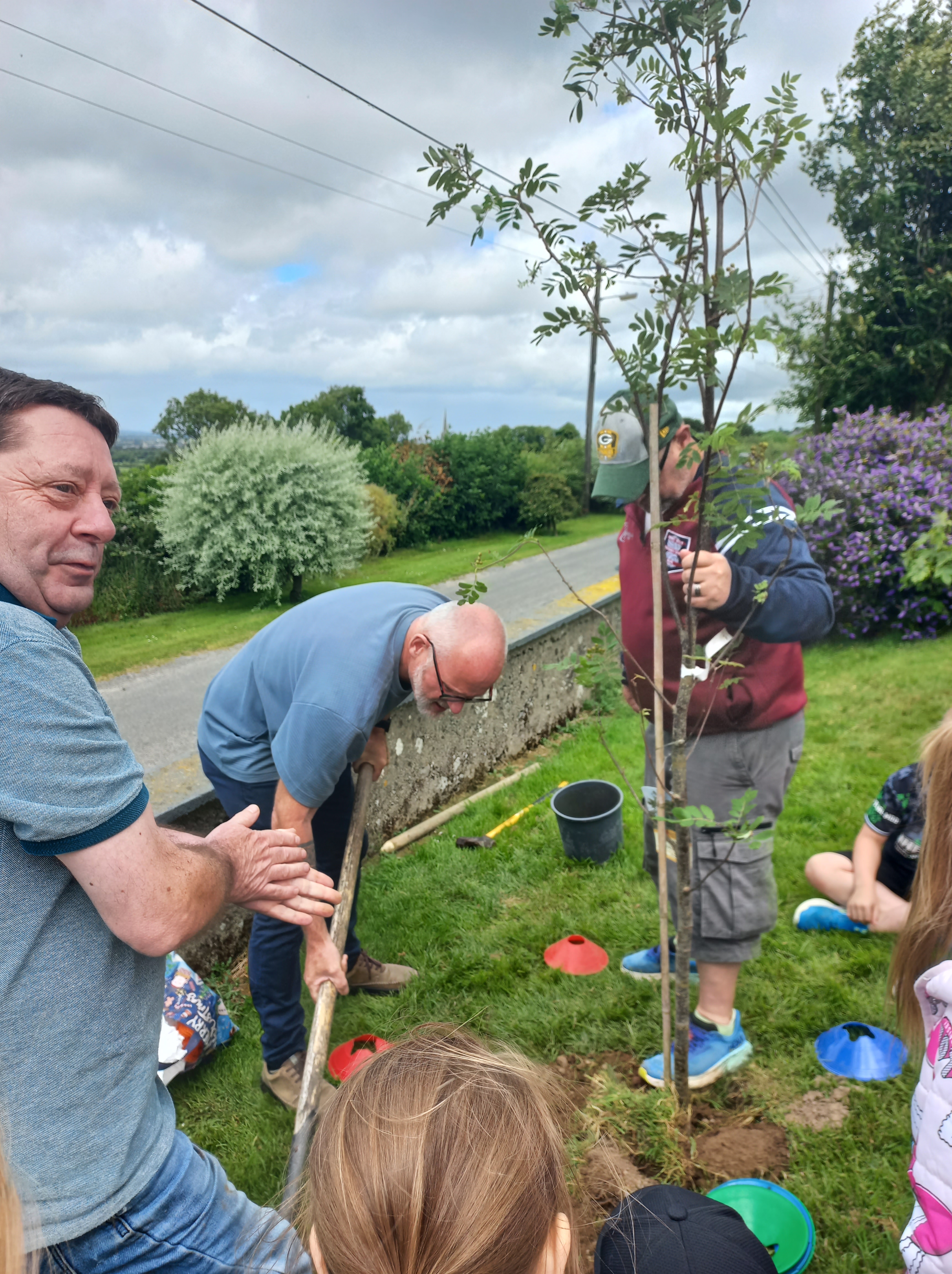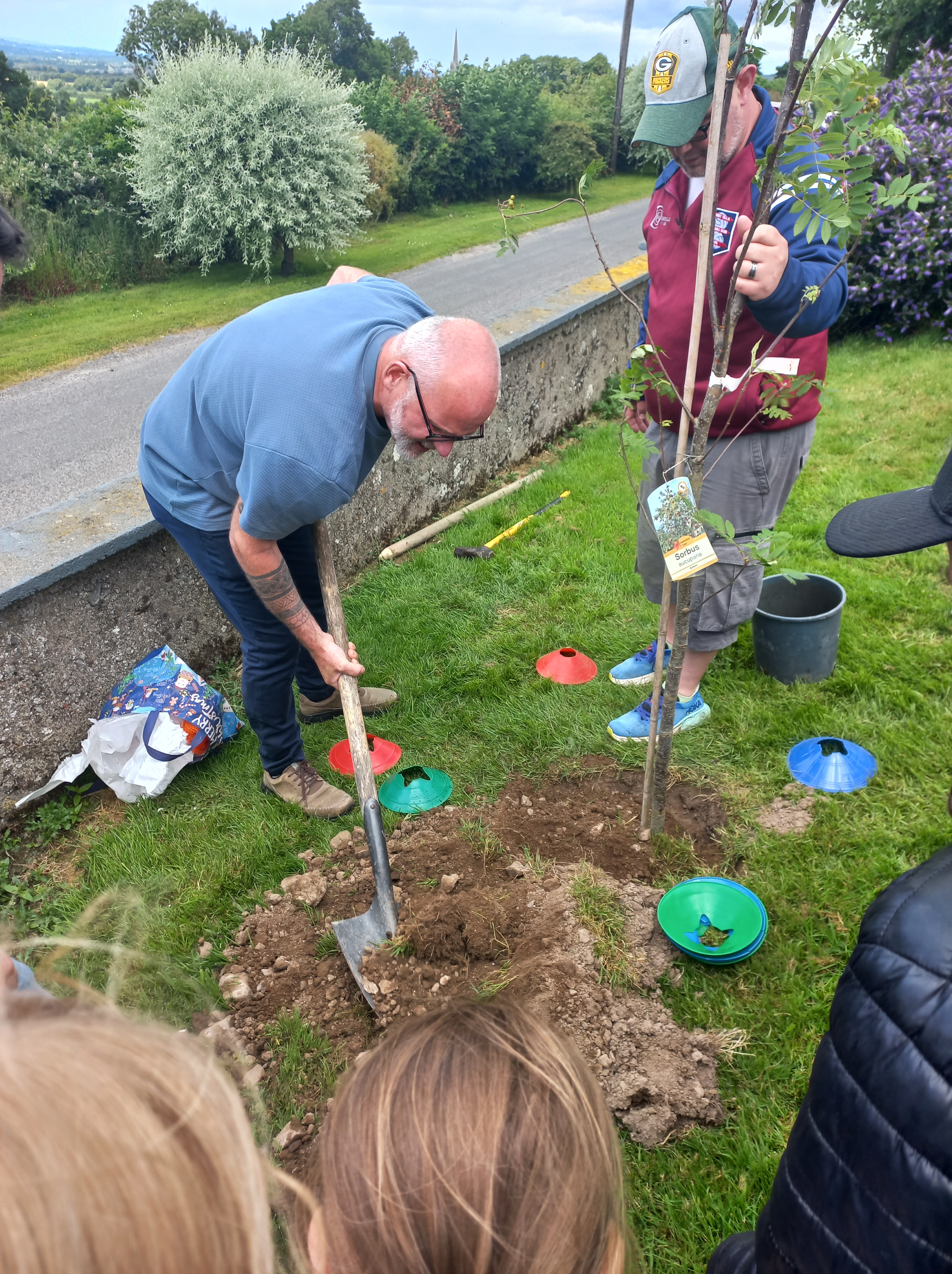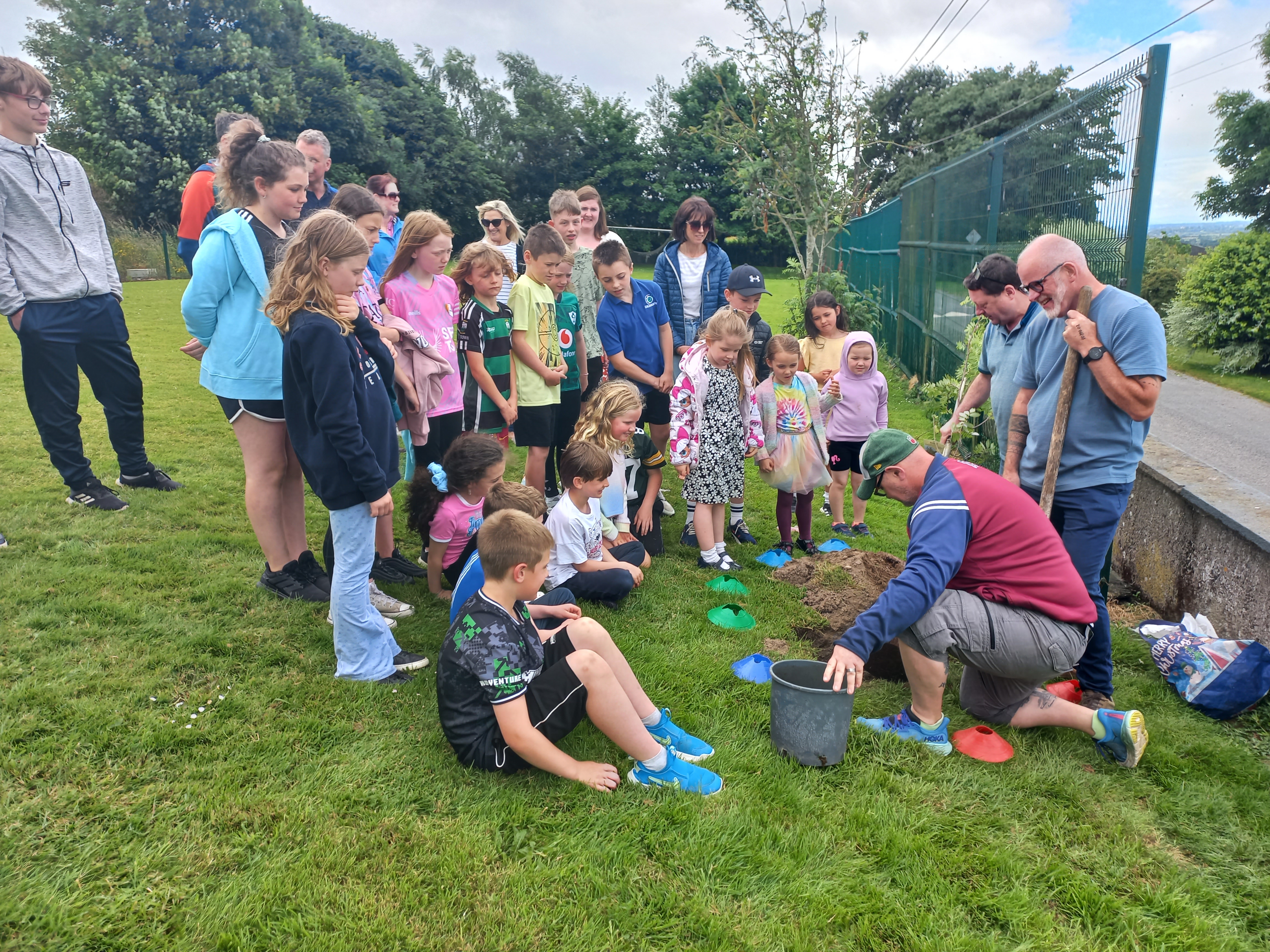 The children marked our principal, Martin Duffy’s, retirement at the end of June with a day packed with a hot-chocolate and chats coffee morning, memory sharing, art-work and messages presented by the children, tree-planting, singing and dancing, and presentation from the staff of artwork by artist, Sarah Moloney. The Parents Association and Board of Management held a retirement function at the end of the summer. We thank Mr. Duffy for his hard work and commitment to the school and wider community, and wish him well on his retirement.
