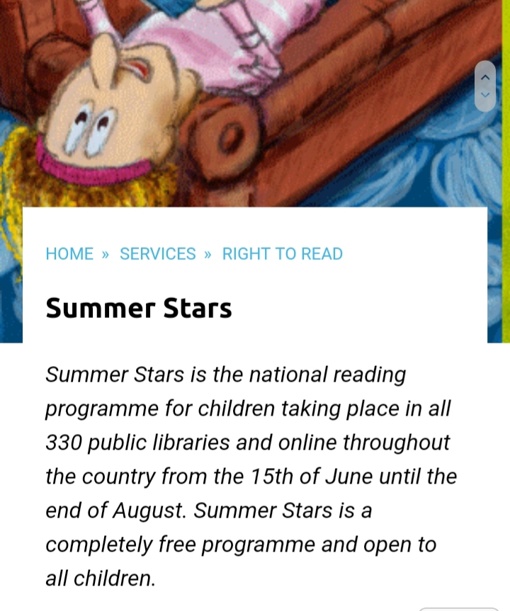 I hope you all enjoy some fun summer activities at home, like picnics in your garden, watering your plants, sports and lots of outdoor play. Remember to keep reading as much as you can, and stay safe in the sun and near water. Carlow Libraries are running their summer reading challenge that I know a lot of you take part in each year. See http://www.summerstars.ie for details.