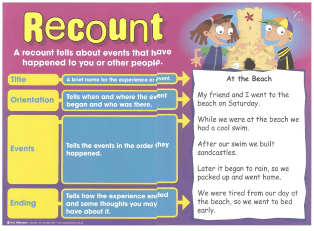 The headings are: Title, Orientation (who, where, when), Events (what did you do) and Ending.