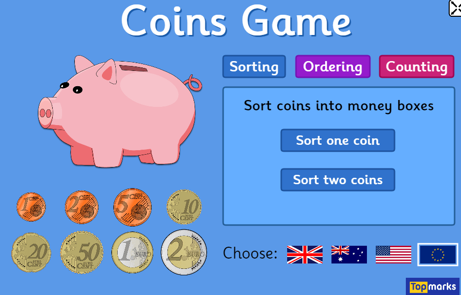 4. Go to www.topmarks.co.uk to play some of the money games at their level (see above). Make sure to click on Euro when you select a game.